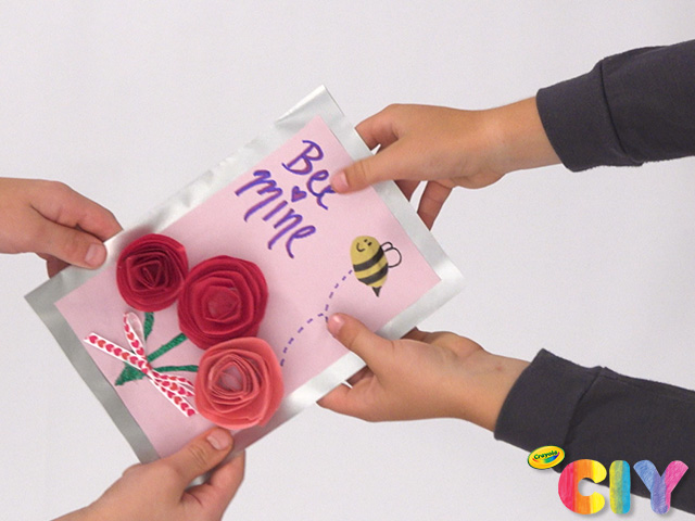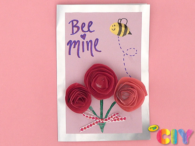 Stop & smell the roses! Learn how to make rolled paper roses, then add them to this buzzworthy homemade Valentine’s Day card.